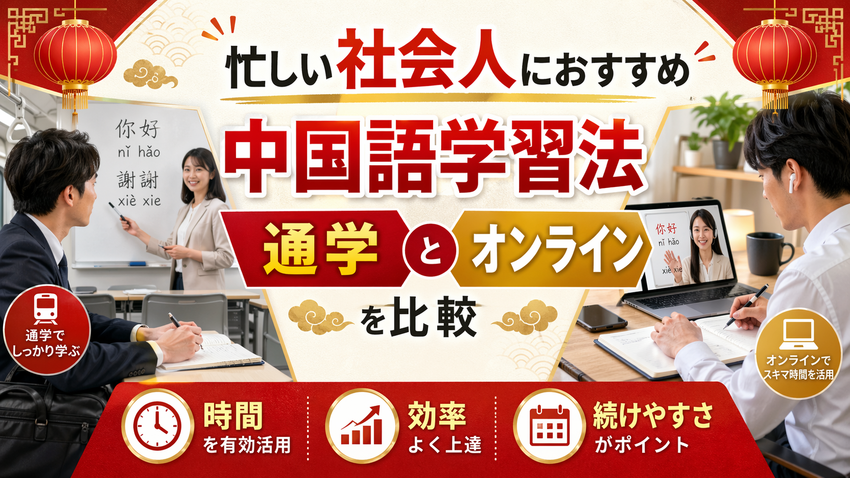 忙しい社会人におすすめの中国語学習法とは?通学とオンラインを比較